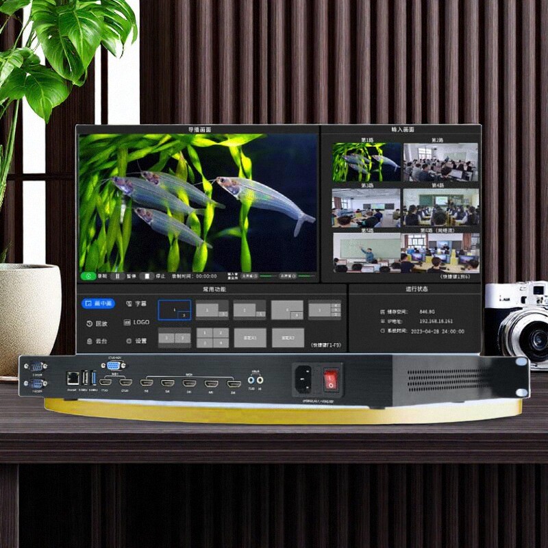 產(chǎn)品詳細介紹產(chǎn)品特點: ★1.系統(tǒng)結(jié)構(gòu):一體嵌入式結(jié)構(gòu);1U機架式全鋁機箱;1個內(nèi)部3.5寸 SATA盤位; ★2. 視頻采集:硬件采集方式;視頻輸入接口: HDMI*5 (任意選2路4KP30其余1080P60); 3. 輸入分辨率:640x480 ~ 3840*2160,支持自動偵測分辨率及幀率功能,不但支持常見的4k,1080P60/50,1024x768@60fps等常見的分辨率,也支持1080P25/P30等分辨率 4. 支持4K H265或H264編碼及解碼; 5. 支持1個USB3.0接U盤及移動硬盤,1個USB2.0接鼠標(biāo),不用接網(wǎng)絡(luò)即可直接操控本地回放及文件導(dǎo)出等操作; 6. 支持外接13寸或23寸觸摸屏顯示圖像及觸控,實現(xiàn)所見及所得的導(dǎo)播效果;支持VGA及2個HDMI輸出,HDMI支持4KP輸出(固件暫未開放4K60,暫僅支持4K30P輸出); 7. 網(wǎng)絡(luò)流媒體延時:<=1秒; 8. 錄制格式:MP4; 9. 錄播功能:同步錄制/同步直播/在線點播/遠程導(dǎo)播/本地導(dǎo)播/互動錄播; 10. 錄播模式:多流多畫面(資源模式)/單流單畫面(電影模式)/單流多畫面(畫中畫); 11. 支持一路rtsp/ts流解碼,分辨率支持4k,解碼流可進行導(dǎo)播后錄制,直播及點播,支持解碼流全屏顯示及聲音單獨輸 12. 支持rtmp/rtsp直播協(xié)議,內(nèi)嵌rtmp server功能,單機支持30-50并發(fā)數(shù),不需要安裝fms/red5等服務(wù)端軟件直接實現(xiàn)網(wǎng)頁直播; 13. 支持瀏覽器直接觀看直播并不用裝插件,支持html5點播; 14. 提供遠程導(dǎo)播軟件,可實時監(jiān)控4畫面并實時導(dǎo)播一路導(dǎo)播流,并實時錄制,且同時支持網(wǎng)頁按紐導(dǎo)播; 15. 支持疊加4行字幕,每行字幕可設(shè)置開關(guān),字體大小,色彩,坐標(biāo),并能支持中英文; 16. 支持透明背景l(fā)ogo圖片疊加,支持自動疊片頭片尾; 17. 每路錄制文件及直播流均支持1080p60幀H265或H264編碼,幀率提高一倍從而可使效果得到極大的提升,徹底消滅切幀現(xiàn)象;HDMI支持4k分辨率及4k分辨率直播,錄制及點播; 18. 支持開機就錄,硬盤錄滿會自動循環(huán)覆蓋時間最老文件,支持自動分段且分段時間可設(shè)置,徹底實現(xiàn)無人值守的全自動錄播;支持ftp自動上傳至指定帳號及密碼的ftp服務(wù)器; ★19. 程序固化在內(nèi)置芯片中,穩(wěn)定高效,使用嵌入式Linux系統(tǒng),不會中毒,可隨時斷電及長時間開機。用戶可自行安裝硬盤,徹底擺脫售后煩惱;支持MP4錄制實時保護,斷電文件可自動恢復(fù); 20. 支持多級用戶管理,分管理員用戶和一般用戶; ★21. 提供android的 APP,APP用戶及密碼由管理員設(shè)置支持200+用戶,APP支持實時觀看直播及vod點播,端對端延時小于3秒,觀看頁面可直接切換任意通道觀看;