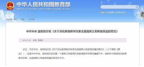 近期,關于教育的綱領性文件在教育圈引起廣泛關注。中共中央、國務院印發《關于深化教育教學改革全面提高義務教育質量的意見》在6月下旬正式向社會發布。