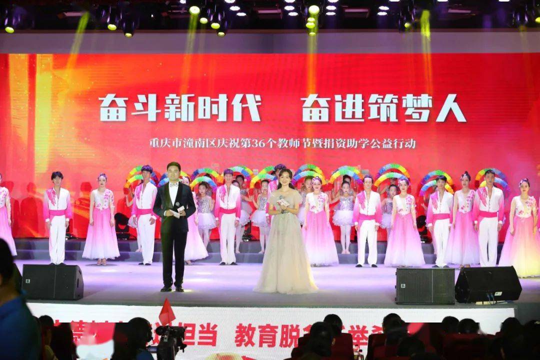 奮進筑夢人”慶祝第36個教師節暨捐資助學公益行動在區委黨校禮堂舉行,活動同時在多家視頻直播平臺進行了直播,潼南區全體教育工作者和中小學學生都能通過互聯網進行觀看。活動現場與會者用歌曲、舞蹈、朗誦等節目表達了對教師的感恩之情,在捐資助學環節,現代中慶作為潼南教育信息化建設的核心企業進行了捐贈,為潼南教育事業的高質量發展奉獻愛心。