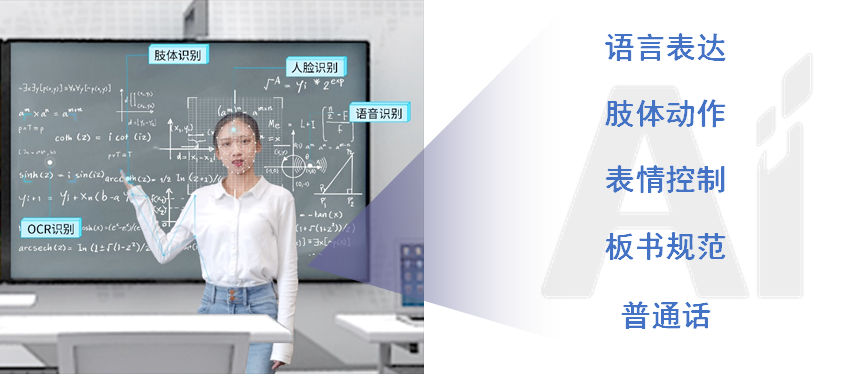 AI智能實訓系統能夠有效解決這些問題。系統通過采集研究生訓練的音視頻信息,進行多模態的數據分析,自動給出包括語言、肢體、表情、板書和普通話等五項教學基本技能的數據分析與評價。研究生可以通過數據分析,準確發現自己訓練中的不足之處,進行有針對性的改進和再訓練。