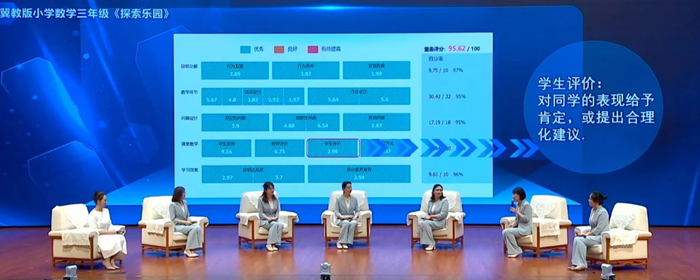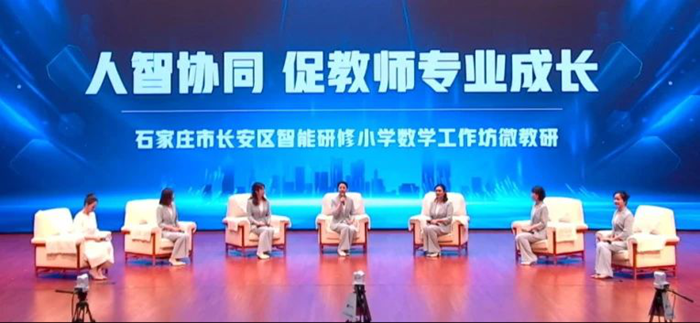 隨后進行的微教研活動,由石家莊市長安區小學數學研修工作坊七位老師共同參與。這次微教研是針對展示課的第四次課后研討。研討中錨定問題,精準探究,實現課堂教學的不斷改進,充分展現了協同、精準的AI教研特色。