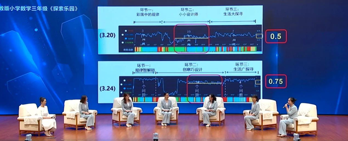 第一次試講中,在學生分享環節,學生抬頭率只有0.5.沒有參與分享的學生顯然專注不足。張老師在教學設計中加入了學生理答內容,讓在座學生也積極參與思考,學生抬頭率從0.5上升到0.75。