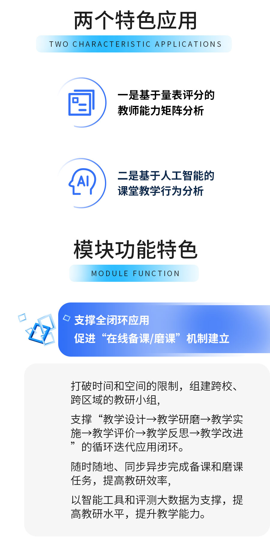 AI教研應用、錄播系統、智慧教室、“三個課堂”解決方案等