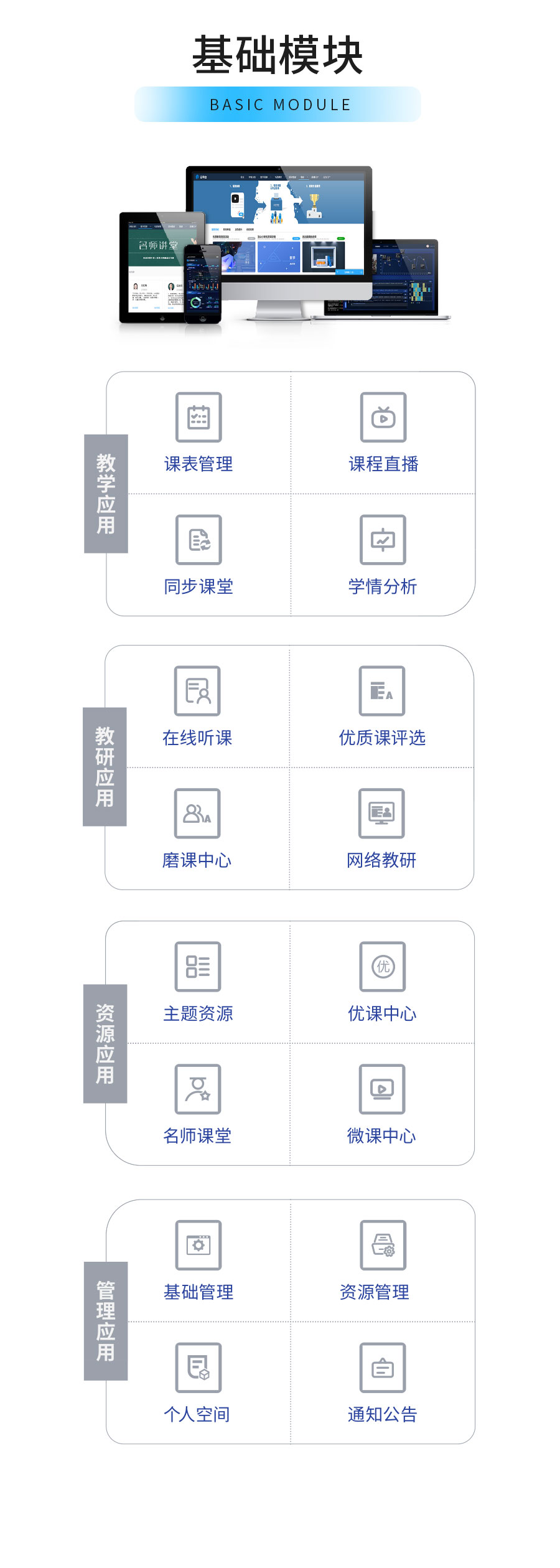 | AI教研應(yīng)用、錄播系統(tǒng)、智慧教室、“三個(gè)課堂”解決方案等 |