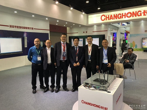(中國(guó)教育裝備行業(yè)協(xié)會(huì)副會(huì)長(zhǎng)兼秘書長(zhǎng)夏國(guó)明聽(tīng)取長(zhǎng)虹教育信息化解決方案)