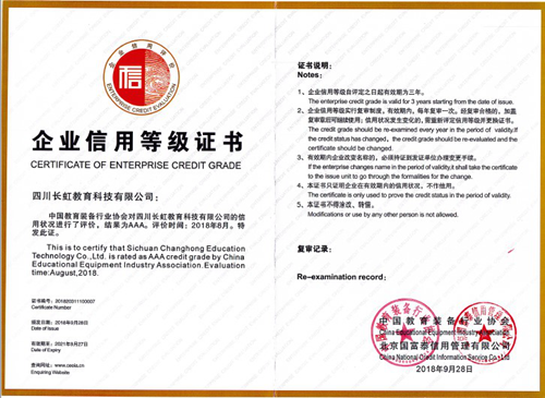 “全國質(zhì)量誠信標(biāo)桿典型企業(yè)”稱號,又獲悉,中國教裝備行業(yè)協(xié)會(huì)和信用評價(jià)工作委員會(huì)聯(lián)合發(fā)布了“關(guān)于公布2018年中國教育裝備行業(yè)協(xié)會(huì)企業(yè)信用等級評價(jià)結(jié)果的通知”(教信評文【2018】4號文件),長虹教育憑借誠信經(jīng)營和規(guī)范管理,從多家參評企業(yè)中脫穎而出,榮膺全國教育裝備行業(yè)“AAA級信用企業(yè)”稱號。