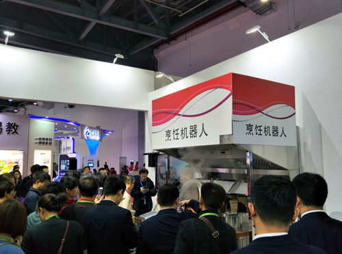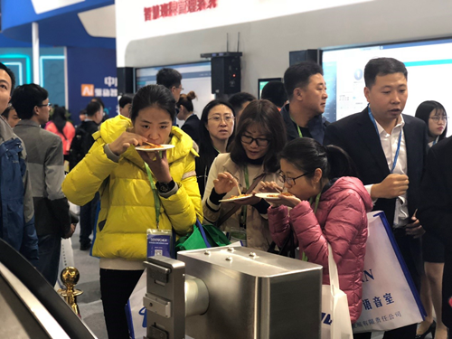 在長虹智能廚房展位上,工作人員向來賓展示了智慧廚房系統中智能烹飪機器人的全自動烹飪,并向廣大來賓提供了豐富的試吃菜品。新鮮出爐的青椒回鍋肉、西紅柿炒蛋、尖椒土豆絲等多種校園菜品備受好評,更令人驚喜的是烹飪過程中自動注油及預熱、注水、投料、勾芡、滾炒、起鍋、清洗,全部環節一鍵搞定。因此,烹飪機器人的快速普及在提升校園食堂食品安全系數的同時又能提高食堂的運營效率、降低運營成本。