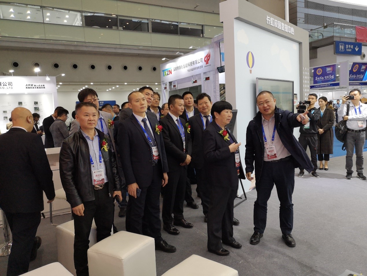 在2019深圳(國際)智慧顯示系統產業應用博覽會,長虹教育與同為長虹集團旗下的長虹美菱中國區商顯事業部、愛聯科技、長虹網絡、長虹電子系統公司集中亮相本屆博覽會,在現場展示了人臉識別考勤、智慧教學、云上校園數據中心、智能數字標牌、智能酒店電視方案、5G全帶寬家庭組網、8K