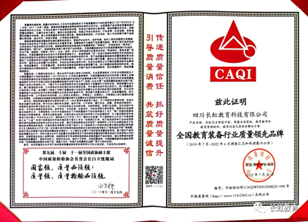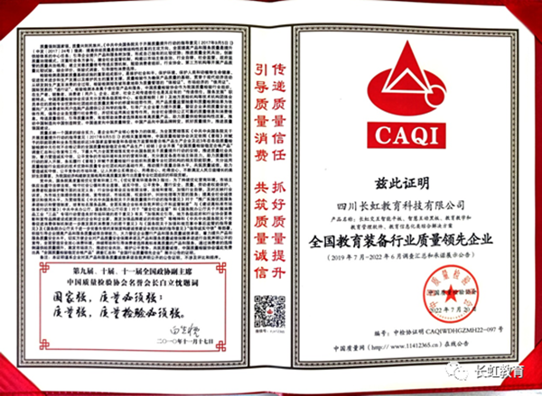 近日,從中國質量檢驗協會獲悉,由國家市場監管總局、中宣部、發改委、教育部、科技部、工業和信息化部等20個相關部門聯合行業協會共同主辦的2022年全國質量月活動中,長虹教育科技憑借過硬的產品品質、誠信的企業經營,斬獲