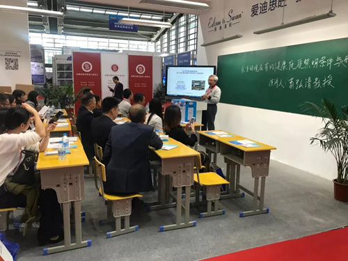 浙江大學附屬第二醫院眼科中心視光部主任、全國兒童近視防控公益科普領頭人、《孩子的護眼寶典》合著者之一倪海龍醫生,也專程從杭州趕來“愛迪思旺”教室健康照明的展位,就《呵護眼睛、防控近視、光明未來》的主題進行了宣講,也提請家長注意學習光環境,尤其是學校教室的學習光環境對孩子眼健康的影響。