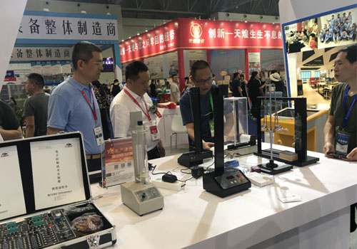 華茂文教作為中國教育裝備行業(yè)協會副會長單位,受邀參加本次展會。華茂文教本次參展20個展位,計180平方,參展的產品有:高中創(chuàng)新物理實驗儀器、創(chuàng)新科普類新品、中小學普教儀器及創(chuàng)客類產品等。其中76屆金獎入圍產品----高中物理創(chuàng)新儀器“新穎力學軌道”,成為展會當天的吸睛亮點。在傳統的教育裝備領域中,展現了創(chuàng)新學科的系列產品,吸獲得各省市、裝備領導及相關學校老師的好評。