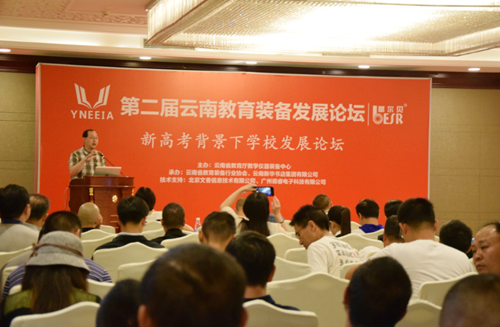 “第二屆云南教育裝備發展論壇”,邀請了中國教育裝備行業協會副會長、中國教育裝備研究院副院長、浙江省教育技術中心主任施建國,中國教育裝備行業協會副會長、上海市教育委員會教育技術裝備中心主任竺建偉、北京市教委教育技術設備中心原主任、教育部教育裝備專家指導委會專家委員、中國信息協會教育分會常務副會長丁書林等嘉賓分別圍繞“教育裝備新趨勢——聚焦356”“引領學習空間重構的中小學創新實驗室建設行動研究”“邁向學習方式變革的教育信息化建設新視野”等主題進行了現場分享與交流;“學校安全風險防控專場論壇”,邀請了中國教育發展戰略學會執行會長、教育部政策法規司原司長孫霄兵,應急管理部風險監測和綜合減災司處長葉學華,教育部政策法規司學校安全風險防控政策評估辦公室主任張國遠帶大家深入了解目前關于學校安全風險防控的相關政策,展示目前可實施的防控案例;“新高考背景下學校發展專場論壇”,則邀請了北京曉羊教育研究院執行院長、錢學森教育思想研究會副會長劉文江,以“新高考背景下走班教學的技術支撐”為主題與大家進行了分享探討。