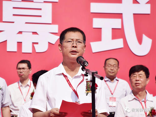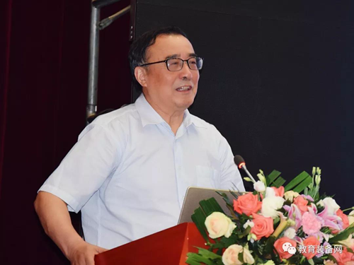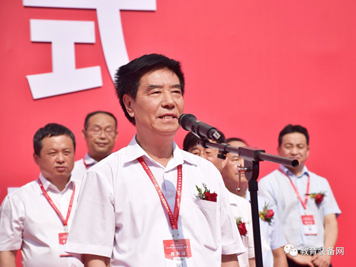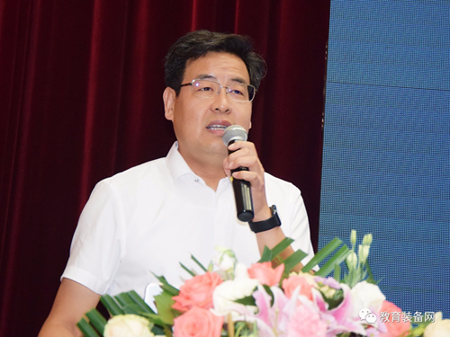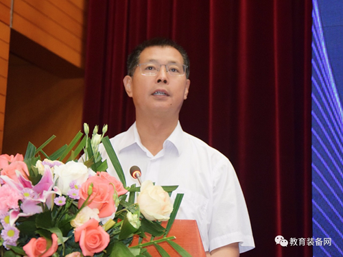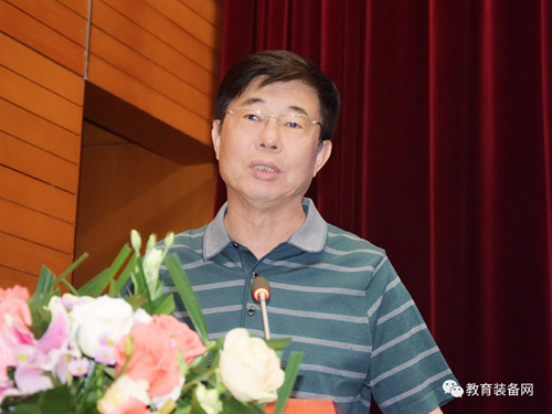 ▲教育部關(guān)心下一代工作委員會常務(wù)副主任、中國教育裝備行業(yè)協(xié)會會長王富講話