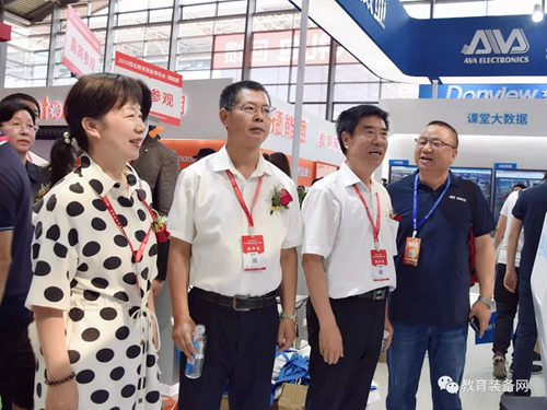 ▲中國教育裝備行業(yè)協(xié)會會長王富、陜西省教育廳、陜西省教育廳教育技術(shù)裝備管理中心領(lǐng)導(dǎo)巡展現(xiàn)場