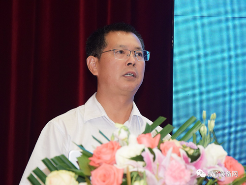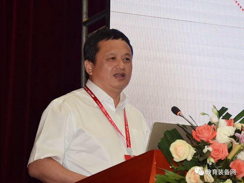 ▲中國教育技術(shù)協(xié)會首席專家、中國教育裝備行業(yè)協(xié)會研究院副院長施建國在教育裝備發(fā)展與應(yīng)用論壇上作主旨演講