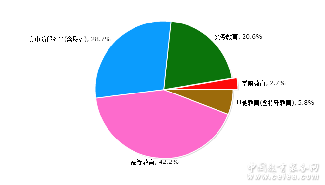 7月份招標采購信息所屬領域統計情況如圖6所示:學前教育占比為2.7%;義務教育占比為20.6%;高中階段教育(含職教)占比為28.7%;高等教育占比為42.2%;其他教育(含特殊教育)占比為5.8%。