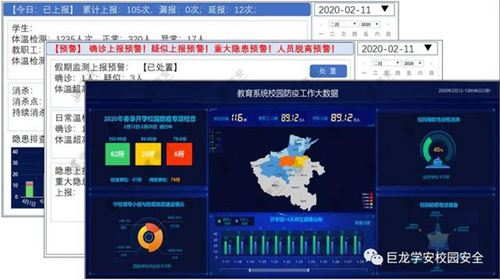 開學后,校門口、圖書室、教室、宿舍等人員密集場所設置體溫監(jiān)測點,體溫異常實時預警,制定疫情應急預案,疑似人員設置隔離觀察區(qū)等。