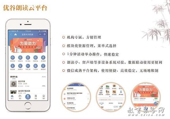 2019年,優(yōu)谷團(tuán)隊(duì)率先提出了朗讀校園整體解決方案,從以往單一的朗讀亭產(chǎn)品,拓展成適配校園朗讀的整體解決方案。通過(guò)不同場(chǎng)景的覆蓋,以及朗讀亭、優(yōu)谷朗讀小程序、優(yōu)谷朗讀小舞臺(tái)、朗讀教室、大數(shù)據(jù)平臺(tái)等產(chǎn)品新形態(tài)的綜合運(yùn)用,多維度提升學(xué)生的語(yǔ)言表達(dá)能力。