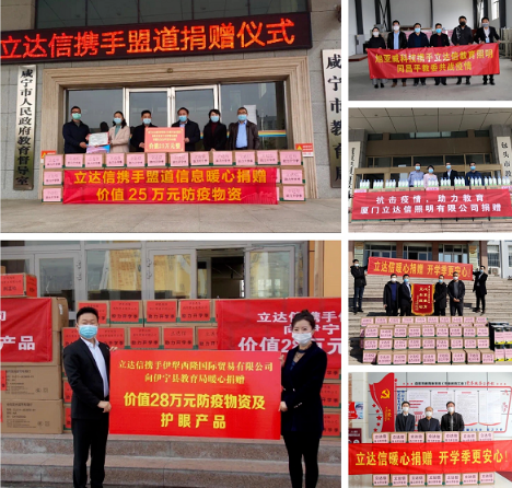 2020年3月,立達信作為教育照明領域的開創者和領跑者,一直心系教育,關注學校防疫需求,分批次采購價值600萬防疫物資,并陸續捐贈給全國各地學校,助力開學季!