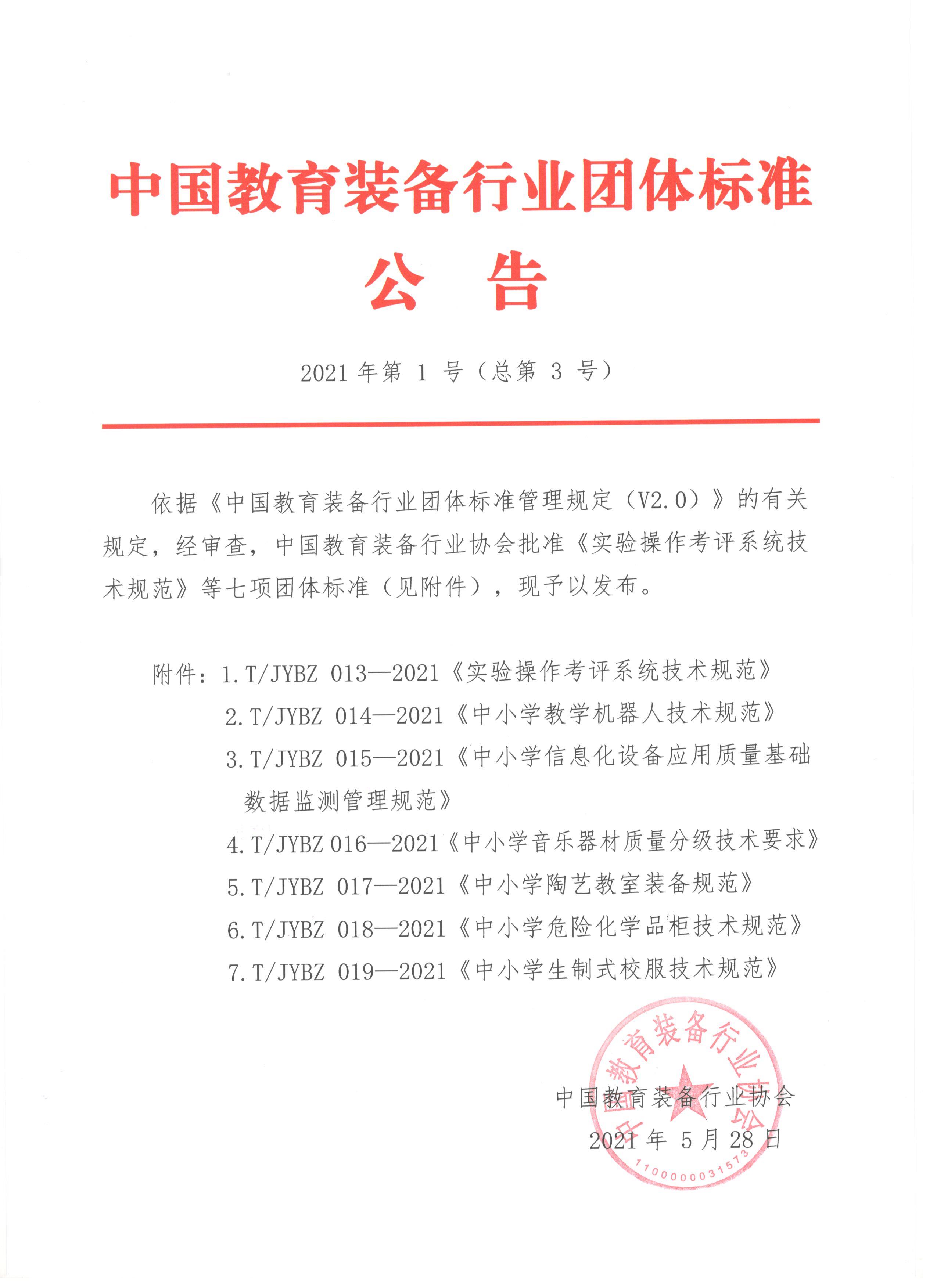中國教育裝備行業(yè)團(tuán)體標(biāo)準(zhǔn)公告