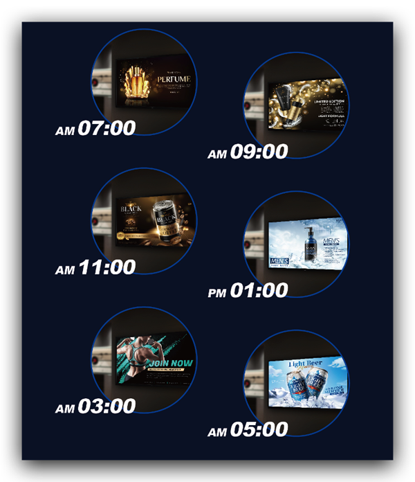 透過排程功能安排優化的廣告內容于指定時間播放, 最大化廣告墻的曝光效益