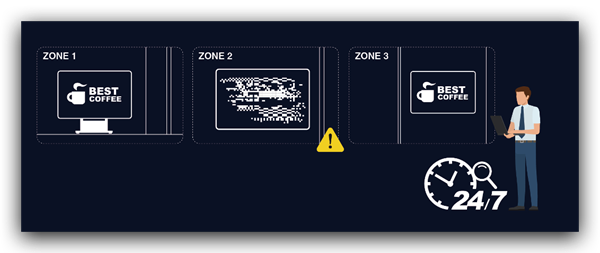 因應不同展示場景需求,無論是投影機, 互動白板, 到大型LED 顯示器屏; 透過單一控制面板及指令可全面監控大屏顯示群組. 問題發生時立即發出警示以便及時排除。