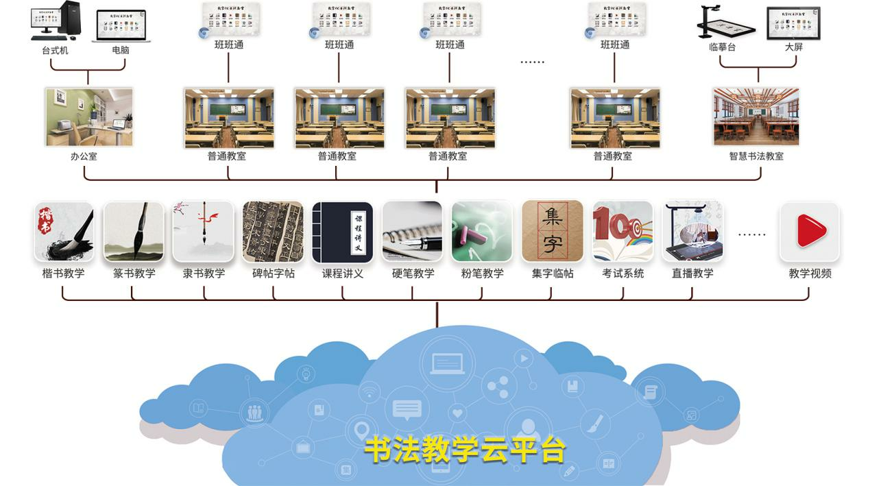 漢丹云智慧書(shū)法云教室依托行業(yè)領(lǐng)先的云平臺(tái)構(gòu)建書(shū)法云服務(wù),讓學(xué)校所有教室都可以開(kāi)展書(shū)法教學(xué)工作,解決學(xué)校教室緊張、排課困難和師資緊缺等多方面問(wèn)題。書(shū)法專用教室在日常教學(xué)排課中,存在資源緊張,排課困難的情況,很難保證每個(gè)學(xué)生的課時(shí)安排;同時(shí)書(shū)法課除保證日常教學(xué)外,為達(dá)到好的教學(xué)效果,還需為學(xué)生提供額外的書(shū)法練習(xí)課,所以書(shū)法專用教室完全不能滿足日常教學(xué)使用。因此,將依據(jù)互聯(lián)網(wǎng)+教育理念打造網(wǎng)絡(luò)化的智慧書(shū)法教室,接入書(shū)法教學(xué)云平臺(tái),讓所有教室都可以開(kāi)展書(shū)法教學(xué)工作,解決書(shū)法功能教室排課緊張問(wèn)題;師生可以在校園任何接入網(wǎng)絡(luò)的設(shè)備上都可登陸書(shū)法云平臺(tái)開(kāi)展書(shū)法教學(xué)工作,賦能書(shū)法課堂和校園內(nèi)外,讓教學(xué)工作不受制于課堂。