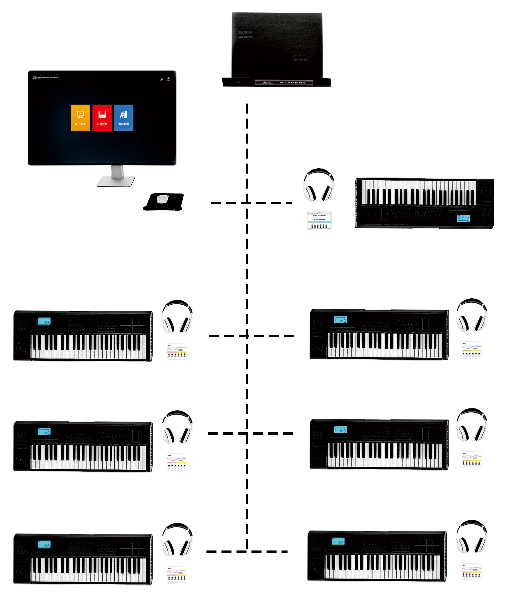 建設內容包括:教學一體機、數字音樂創客教學軟件(教師端、學生端)、教師用智慧電鋼琴(1018S、1018A、1018C)、學生用智慧電鋼琴,實現教師備課、師生互動、樂器演奏、音樂測評、教學管理、音樂創作創編。