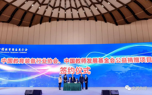 10月22日,在第80屆中國教育裝備展示會銜接會上,中國教育裝備行業協會與中國教師發展基金會聯合舉辦寧武縣西關小學270萬元公益捐贈簽約儀式。中央和國家機關行業協會商會黨委委員、中央和國家機關工委協會黨建部一級巡視員劉巖,協會黨建部綜合管理處副處長張克強;寧武縣委副書記任紅,縣教育科技局、縣西關小學負責同志參加簽約儀式。