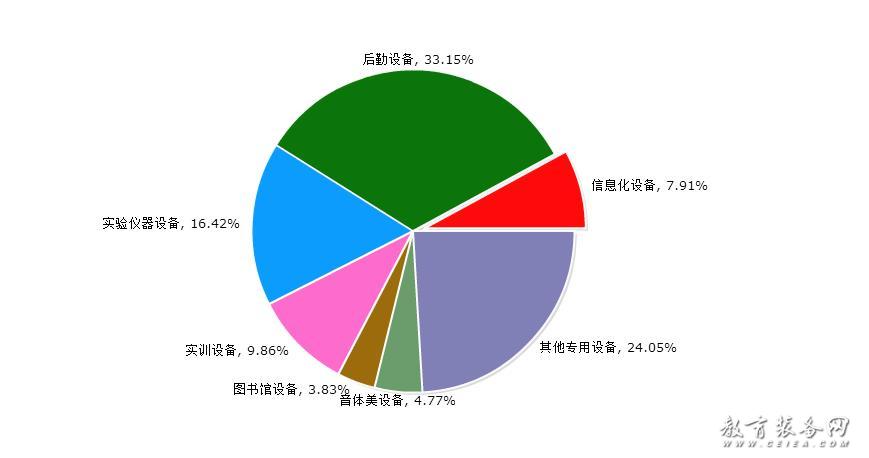 根據(jù)對(duì)教育裝備細(xì)分的歸納,教育裝備網(wǎng)將教育裝備具體劃分為七大類(lèi),即信息化設(shè)備(含智能平板、錄播系統(tǒng)、智慧黑板等),后勤設(shè)備(含校園基建、安防設(shè)備、食堂設(shè)備、課桌椅等),實(shí)驗(yàn)儀器設(shè)備(含儀器儀表、實(shí)驗(yàn)室平臺(tái)等),實(shí)訓(xùn)設(shè)備(含實(shí)訓(xùn)系統(tǒng)、實(shí)訓(xùn)設(shè)施等),圖書(shū)館設(shè)備(含借還系統(tǒng)、微型圖書(shū)館等),音體美設(shè)備(含樂(lè)器、體育設(shè)施、美術(shù)用品等),其他專(zhuān)用設(shè)備(含創(chuàng)客教育、心理健康特教設(shè)備等)。