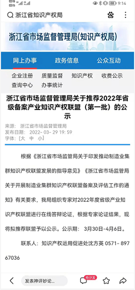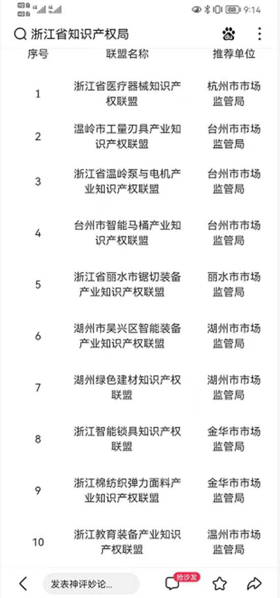 浙江省市場監(jiān)督管理局關(guān)于推薦2022年省級備案產(chǎn)業(yè)知識產(chǎn)權(quán)聯(lián)盟(第一批)的公示