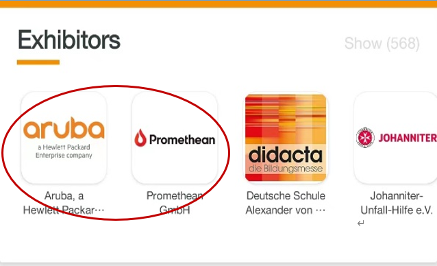 據筆者現場觀察,90%以上的參展單位來自德國本土,其余則來自美國、奧地利等國家。我國企業僅有大疆教育擁有獨立展位。但到目前為止,展會評出的兩家明星單位(圖4)——均為美國公司,其中Aruba是惠普旗下的網絡服務企業,;另一家Promethean則是著名的交互式學習企業(2015年開始由中國公司控股)。各類企業總體相對分散,沒有形成一哄而上、彼此纏斗的內卷局面。