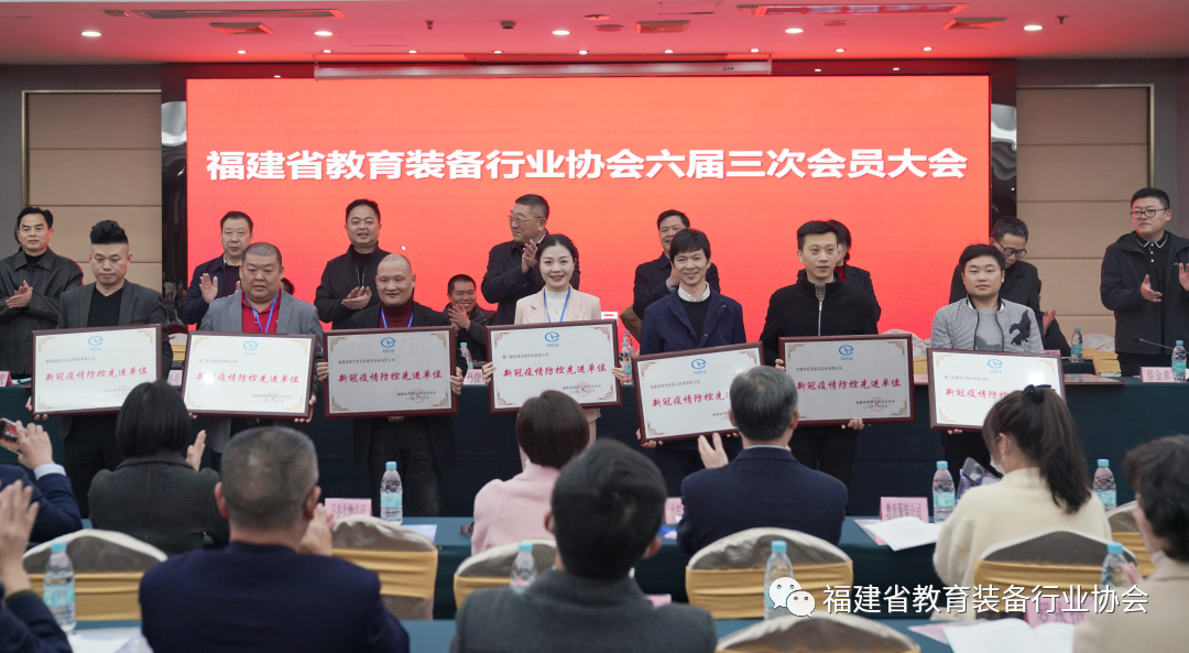 會上,協(xié)會副秘書長陳鴻宣讀了協(xié)會對新冠疫情防控先進單位和先進個人的表彰決定;及宣讀了聘任福建省教育裝備行業(yè)技術(shù)咨詢委員會新一屆委員的決定。此次共有14家省內(nèi)外優(yōu)秀企業(yè)和六名個人獲得疫情防控先進單位與先進個人榮譽。主席臺上的領(lǐng)導向獲獎單位、個人頒發(fā)了證書和獎牌;為新聘任的技術(shù)咨詢委員頒發(fā)了聘書。