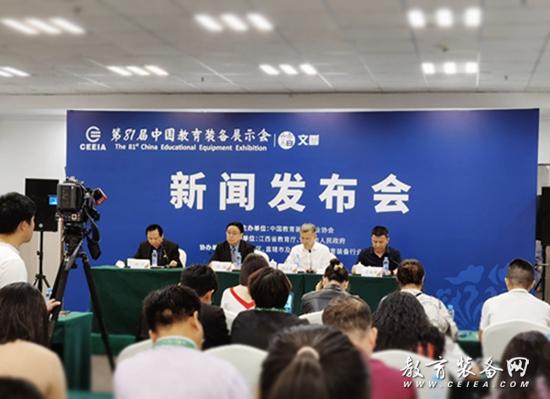 4月19日下午,第81屆中國教育裝備展示會新聞發布會在南昌召開。中國教育裝備行業協會秘書長李瀛、江西省教育技術與裝備發展中心主任熊春光、南昌市商貿和會展服務中心主任胡星、南昌綠地國際博覽中心總經理肖家湖出席發布會介紹有關情況并回答記者提問。