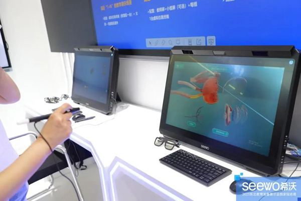 只需要提筆戴鏡,即可沉浸式體驗VR實景教學。希沃桌面VR交互一體機融合了3D顯示、虛擬仿真等技術(shù),以立體、高清的畫面還原實驗實訓場景,并配合汽修拆解、醫(yī)學剖析、物理實驗等各類實訓課程資源,助力學生實踐經(jīng)驗和實訓技巧。