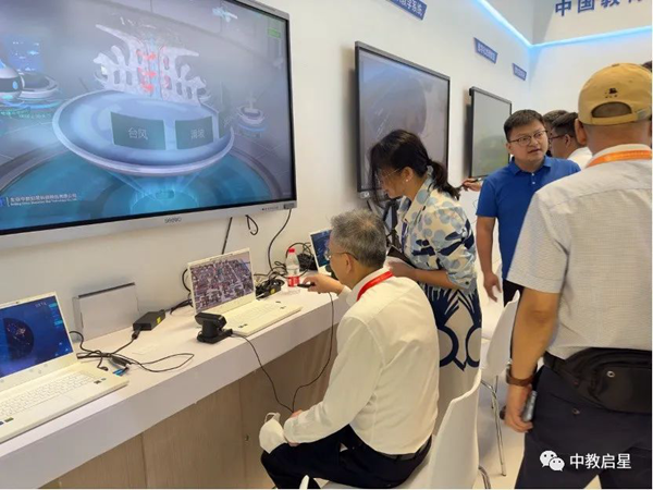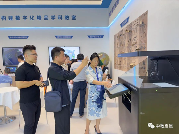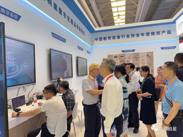 作為受邀參展的虛擬現實融合教育領域的領先企業中教啟星得到各位領導的關注,沈陽市教育技術裝備中心、黑龍江省原教育科學研究院院長、江西省教育廳程裕秋副廳長和江西省教育技術與裝備發展中心熊春光主任親臨展區,體驗了所有展示產品,并給予高度的評價。