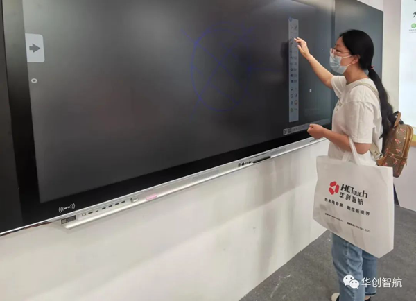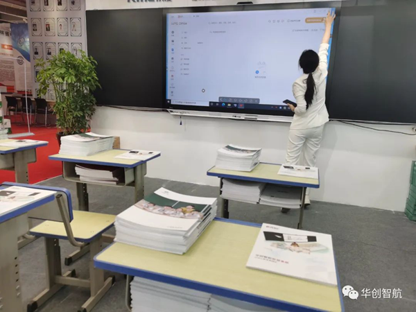 本次展會,華創智航攜手合作伙伴,在現場展示了以納米銀電容智慧黑板為主的多款設備。華創智航納米銀電容智慧黑板提供86、98和110三個尺寸可選,滿足不同教室的需求。純平外觀、高清顯示,178°超廣視角,看得更清晰更舒適。全屏可支持板書,超大書寫尺寸,具有一鍵開關機、定時開關機等功能,軟件兼具易用性和包容性,多種書寫筆、互動工具、教學工具、可實操資源隨調隨用;強大的備授課軟件,輕松預設并呈現趣味互動課堂。