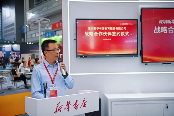 本次展會(huì)期間,深圳新華書店教育服務(wù)有限公司舉辦了戰(zhàn)略合作簽約儀式,與廣州長(zhǎng)鵬光電科技有限公司、深圳市方直科技股份有限公司、廣東劉之頓信息技術(shù)有限公司、深圳數(shù)聯(lián)天下智能科技有限公司、深圳市智樂園科技股份有限公司、深圳市中圖信息技術(shù)有限公司等業(yè)內(nèi)知名企業(yè)共同攜手,為深圳教育的發(fā)展持續(xù)貢獻(xiàn)更多優(yōu)質(zhì)服務(wù)。