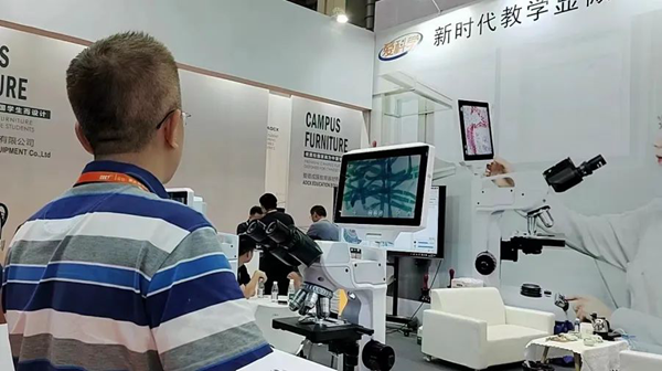 在現(xiàn)場,我們將教學互動系統(tǒng)一一展示,將新時代教學的智慧課堂現(xiàn)場模擬,讓每個觀眾可以身臨其境地體會。愛科學通過對光、機、電、軟的高效融合,實現(xiàn)一臺儀器兼具多樣性能。比如一機多用,可以在一臺顯微鏡上進行生物觀察和實體觀察,甚至再增加金相觀察和熒光觀察的功能,既節(jié)省了采購成本,也節(jié)省了放置空間。