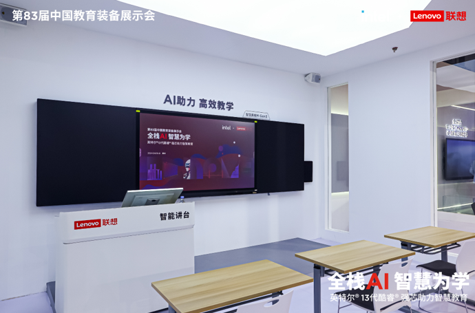 在本次教育展上,聯想發布了全新的智慧教育大屏、智慧黑板、智能講臺等多款產品。此外,聯想剛剛發布的AI PC新品也重磅亮相。