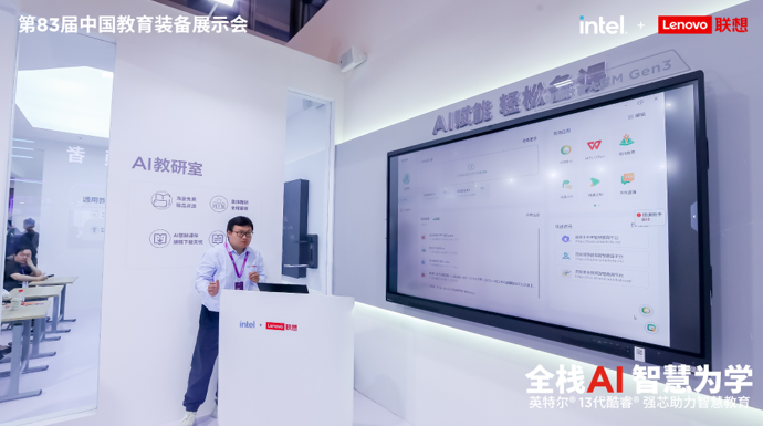 此次裝備展,也是聯想首次全面展示教育領域“全棧AI”產品、方案和服務,包括AI內嵌的智能終端、AI導向的基礎設施和AI原生的方案服務。