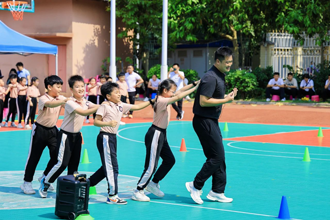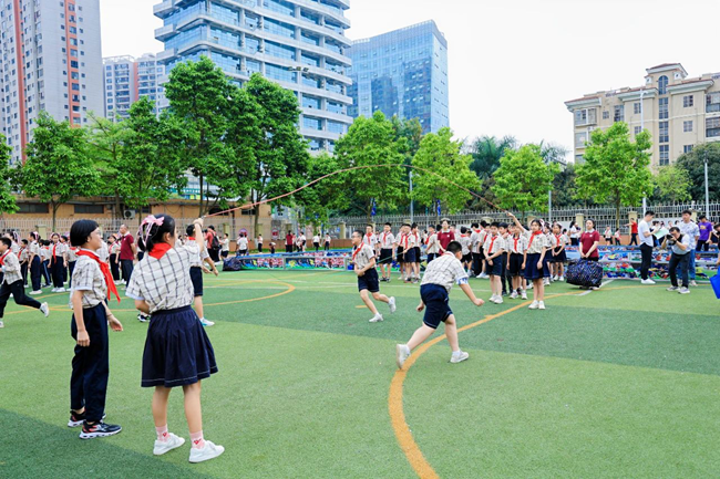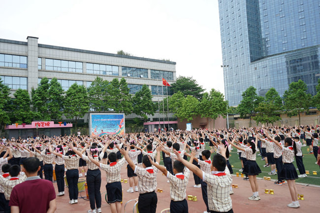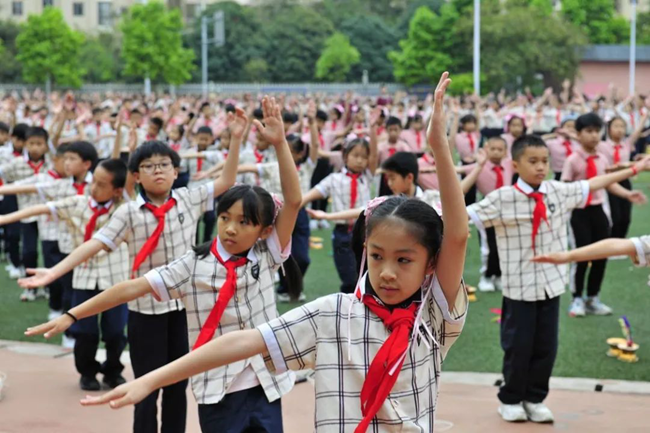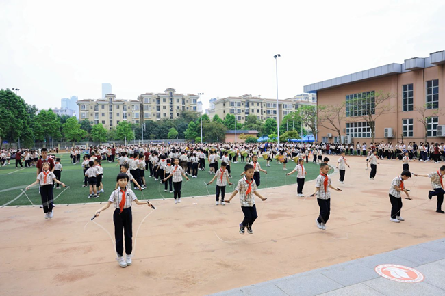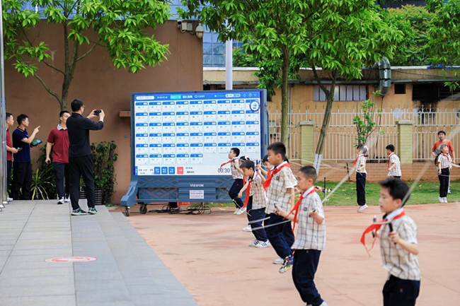 緊接著,玉蘭路小學的學生們帶來精彩的大課間展示。伴隨歡快的音樂,各種充滿活力的操場運動項目、課桌操展示充滿了科技感和趣味性,學生們在運動中盡情釋放激情,展現了新時代少年的風采。這一創新舉措將智慧體育的理念融入日常教學中,讓學生在緊張學習之余得到身心的放松與鍛煉。