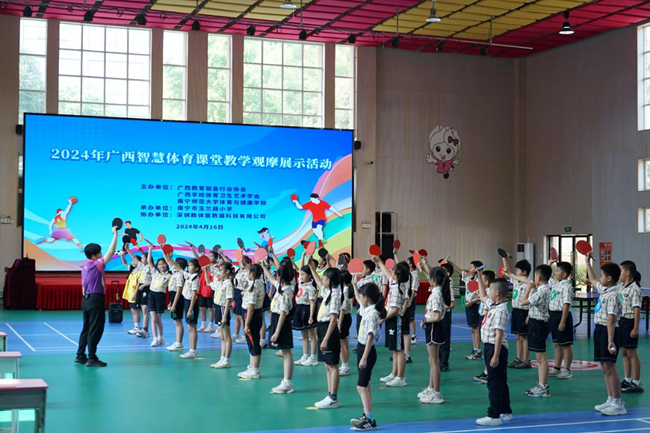 由廣西教育裝備行業協會、廣西學校體育衛生藝術學會、南寧師范大學體育與健康學院主辦,玉蘭路小學承辦,深圳教體醫科技公司協辦的2024年廣西智慧體育課堂教學觀摩展示活動于4月16日南寧市玉蘭路小學成功舉行。此次活動有來自全區各地中小學校長和體育教師共300余人現場參會,這不僅是一場體育教學的盛宴,更是一次數字化轉型教育在新時代體育領域的生動實踐。讓我們來看看本次活動的報道。