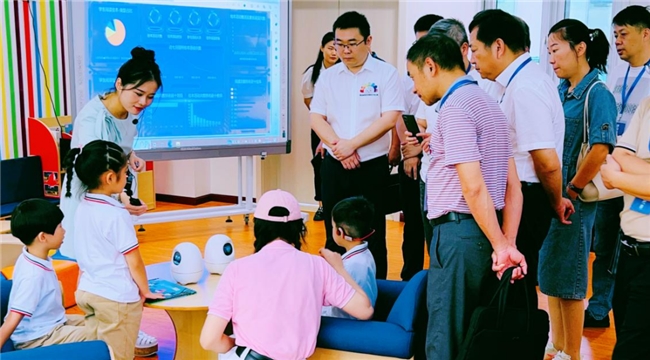 無錫對AI學前教育的探索不止于此。5月,在學前教育團隊的服務和引導下,無錫還與幾百里外的蕪湖灣沚雙向奔赴,用AI同譜“育兒歌”。雙方齊聚在無錫經濟技術開發區觀山實驗幼兒園和天鵝湖實驗幼兒園,觀摩園所特色戶外游戲活動,圍繞教育創新、教育科技應用和教學方法等多方面展開交流。其中,淘云科技學前教育解決方案在園所的創新實踐得到了雙方的一致肯定。