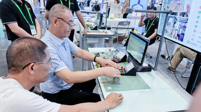 所打造的沉浸式科教體驗區,讓參觀者深度感受“中考實驗操作考評系統”與"AI評分系統"的技術魅力。