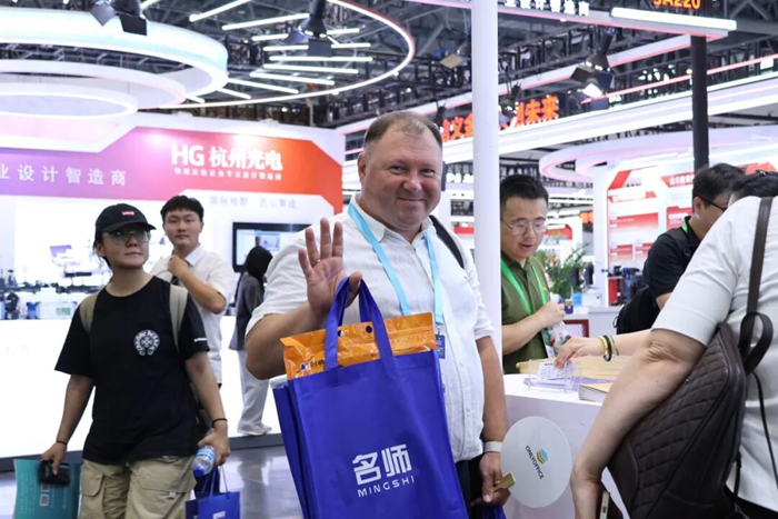 展會現(xiàn)場,杭州名師文化的展位始終是國際嘉賓關(guān)注的熱點。來自“一帶一路”沿線國家及東南亞地區(qū)的政府教育代表、教育行業(yè)從業(yè)者、進出口教育裝備采購商等,紛紛駐足體驗公司核心產(chǎn)品:
