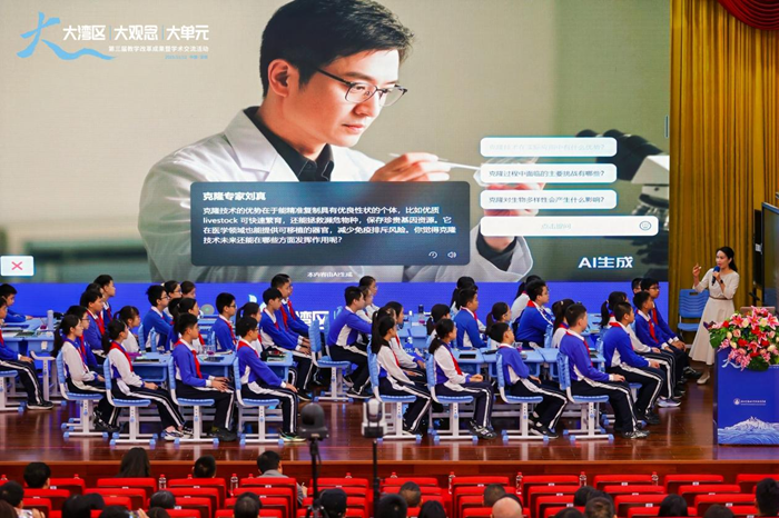 在“AI智能體應用的課堂”展示環節,生物教師陳美芬帶來一堂《解鎖“細胞之城”的生命密碼》的精彩說課。陳老師熟練運用希沃白板5與希沃AI授課助手,構建了一個虛實結合的“細胞之城”。學生們在克隆猴的探索情境中,通過虛擬仿真等互動模式,將抽象的細胞結構與功能化為直觀體驗,通過AI智能體的應用、充分展現了人機協同課堂的獨特魅力。