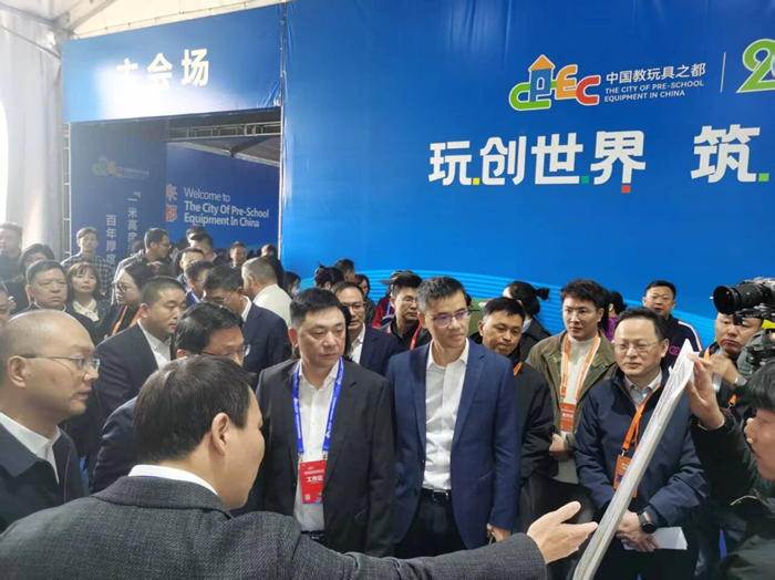 作為本次考察的最后一站,在溫州市教育裝備行業(yè)協(xié)會秘書處陪同下,考察團作為嘉賓出席了 “第四屆中國教玩具之都國際博覽會”開幕式,并實地參觀了凱奇集團、奇特樂集團、巧巧教育、華東游樂、貝爾教儀、潛力玩具、啟源教育、德天教育等多家我會會員單位的特色展位,對溫州教育裝備產業(yè)的整體面貌與發(fā)展活力有了直觀而全面的了解。