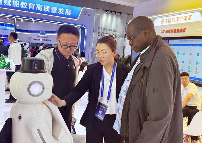 展會首日,新產品、新技術、新成果發布會上,華發人工智能智慧教育機器人重磅發布,贏得了廣泛關注。
