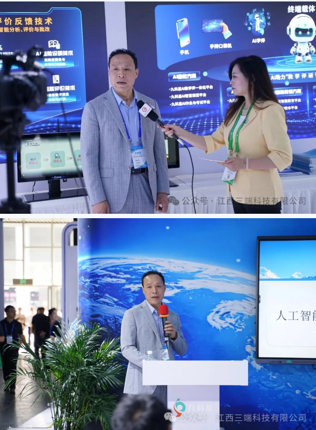 10:00,展會首日,三端科技CEO焦兆群接受中國教育裝備網(wǎng)采訪。